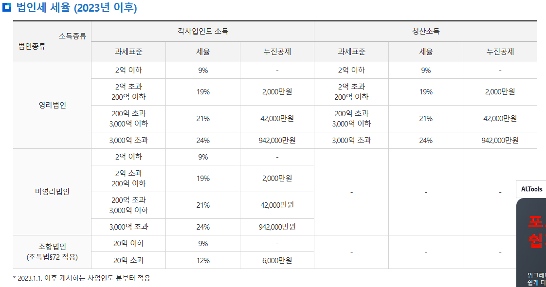 법인세는 과세표준 구간에 따라 누진적으로 세율을 적용합니다.